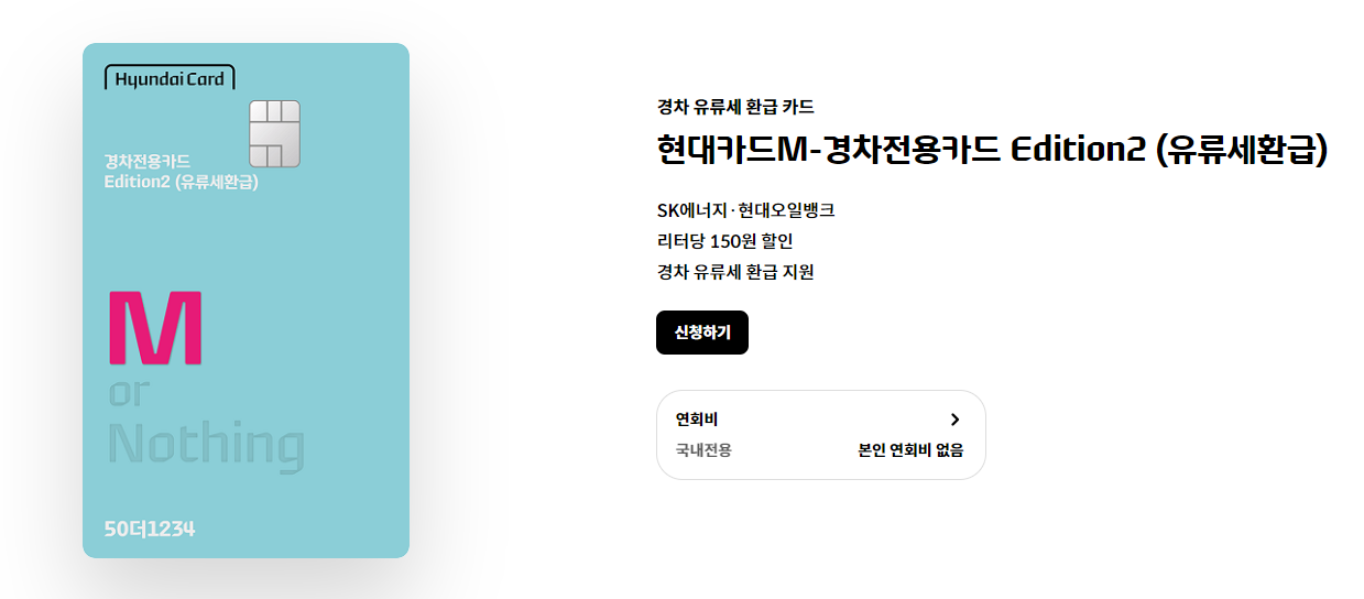 현대카드의 장점은 경차 유류세 환급 제도로 리터당 200원 할인이 되고,