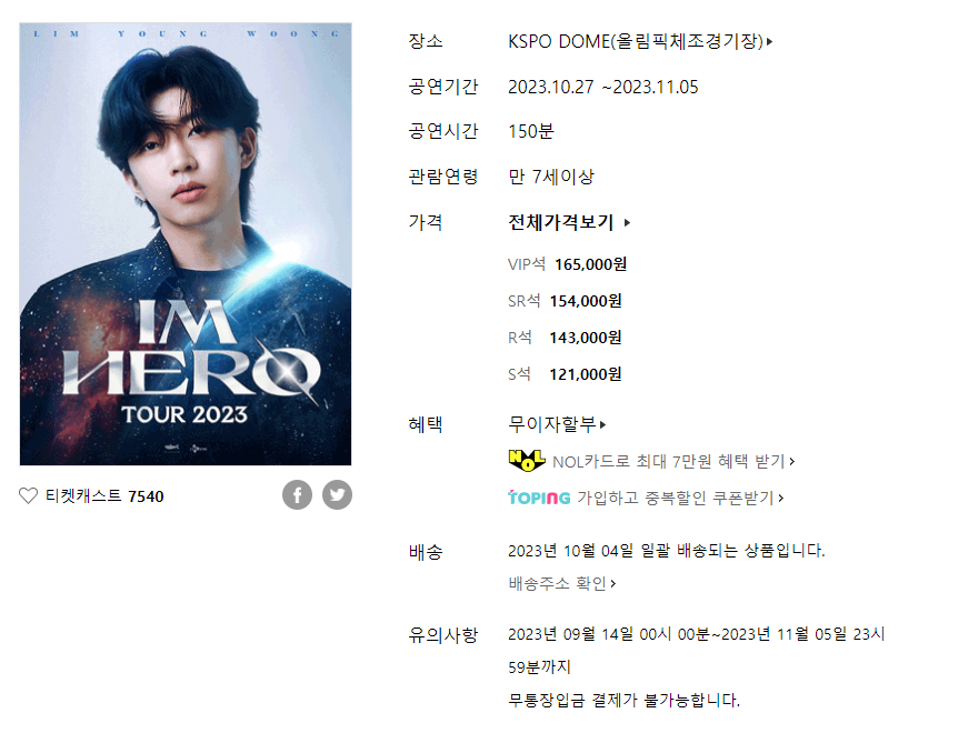 2023 임영웅 콘서트 일정 및 좌석은
